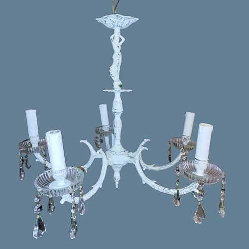 Realizada en bronce y patinada en blanco mate con efecto decapé o desgastado.