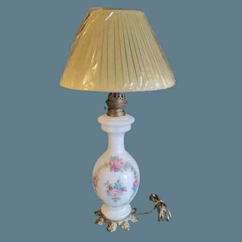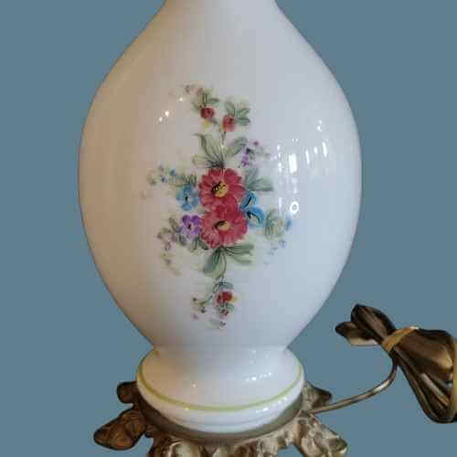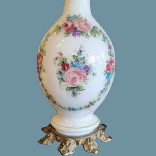Realizada en bronce y opalina pintada a mano con decoración floral.