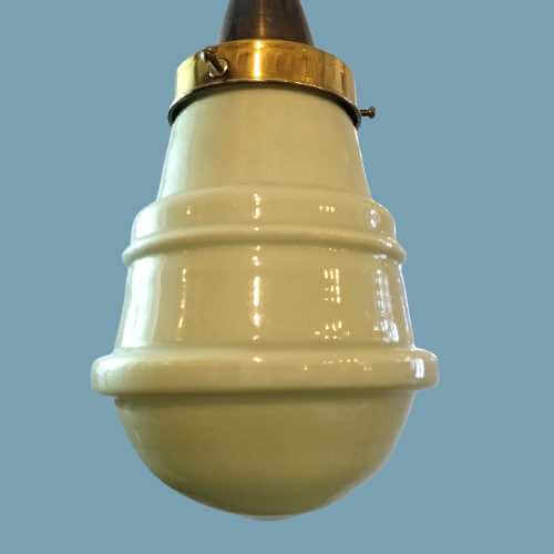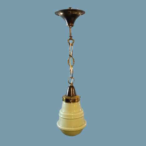Realizada con cuerpo de bronce y globo de opalina ámbar.