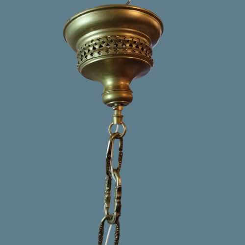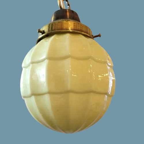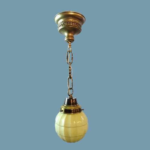Realizada con cuerpo de bronce y globo de cristal opalina color ámbar.