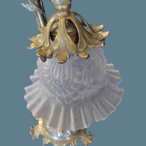 Realizado con cuerpo de bronce y tulipa de cristal rizado.